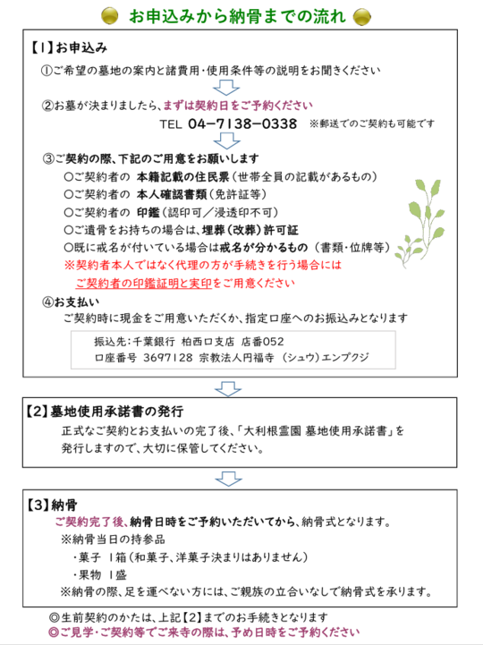また、大利根霊園では郵送納骨(送骨)での納骨も承っております。詳しくはhttp://soukotu.akibare.ne.jp/をご覧ください。