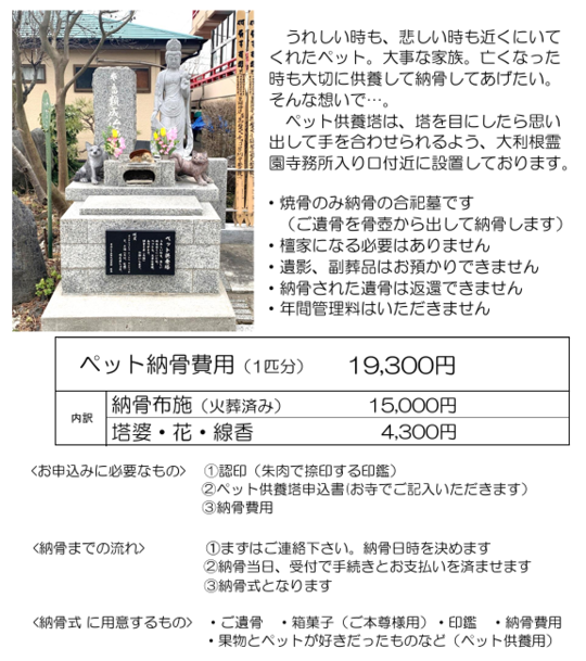 ※ペットも一緒に納骨できます。(別途ペット納骨は1霊につき 29,300円がかかります。改葬の際はペットのご遺骨も一緒に改葬します)